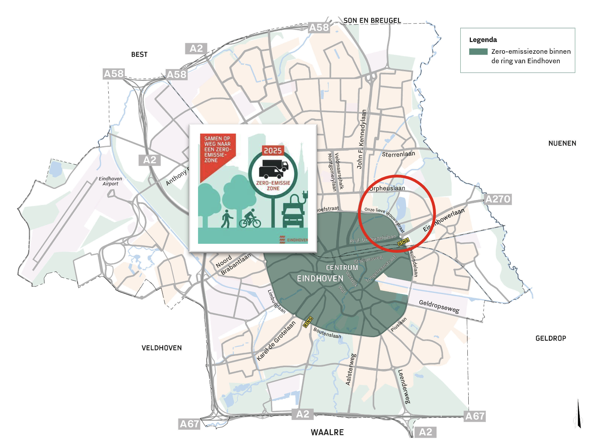Het concoursterrein zelf ligt buiten deze zone. De vrachtwagenparking op de TU/e campus ligt echter binnen de zero-emissiezone.